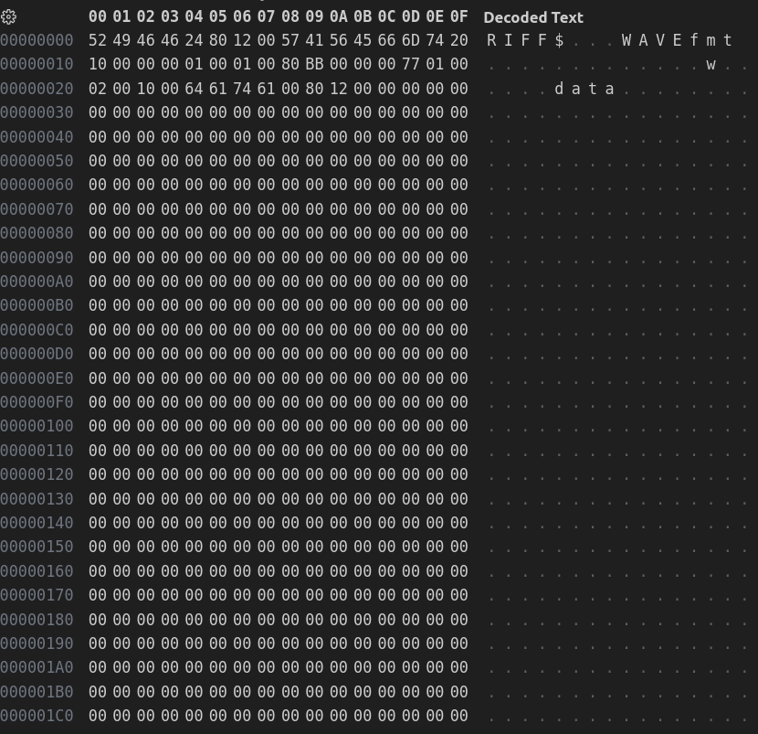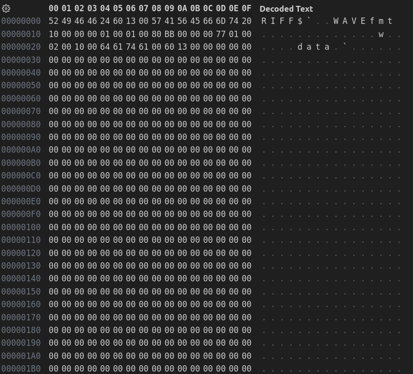 Unfortunately it seems to be the same as before where the wav file contains a header but all null data: